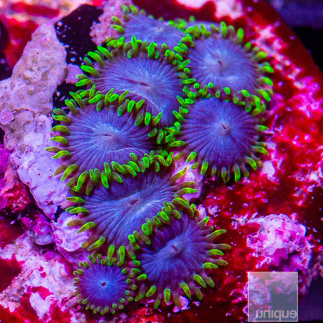 HUSBANDRY NOTES: Zoa/Paly- We keep our corals under Dalua/Illumagic X4 LED lights with an intensity of approximately 100 PAR and feed regularly with Polyp Lab Reef Roids and Benepets.