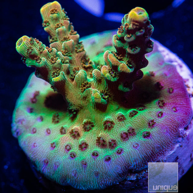 HUSBANDRY NOTES: SPS- We keep our corals under Dalua/Illumagic X4 LED lights with an intensity of approximately 200-250 PAR and feed regularly with Polyp Lab Reef Roids and BenePets.This is a WYSIWYG item. You will be purchasing the actual coral shown in the photo.