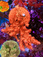 The brightest red we have seen from a coral. Fast growing and wickedly bright. This coral stands out from across the room! Hardy and tabling.