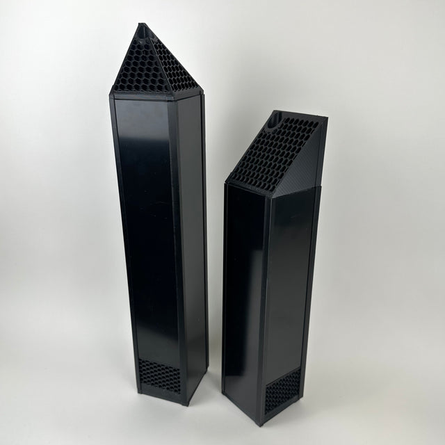Behold the long awaited Panta Surge! This wave device is designed to move water in a fashion that replicates natural reef movement. By separating the intake from the output, the entire aquarium now becomes intricately involved in water transfer. Not only does the pump pull water from the bottom and return it out of the top, it reverses to create an opposite flow. Each direction can be adjusted in both intensity duration. Advanced control function including syncing with an endless amount of additional pumps is all possible with the purchase of the USB adapter. Using the highly engineered Panta Rhei ECM42 pump, this unit is quiet and strong. It features the new dual "blue" magnetic switch button supplied controller. Not shown is the wire that runs out of the top of the unit. Units come standard with the 45 degree cap. For placement desiring the straight forward please purchase the optional straight output for the Panta Surge 42.