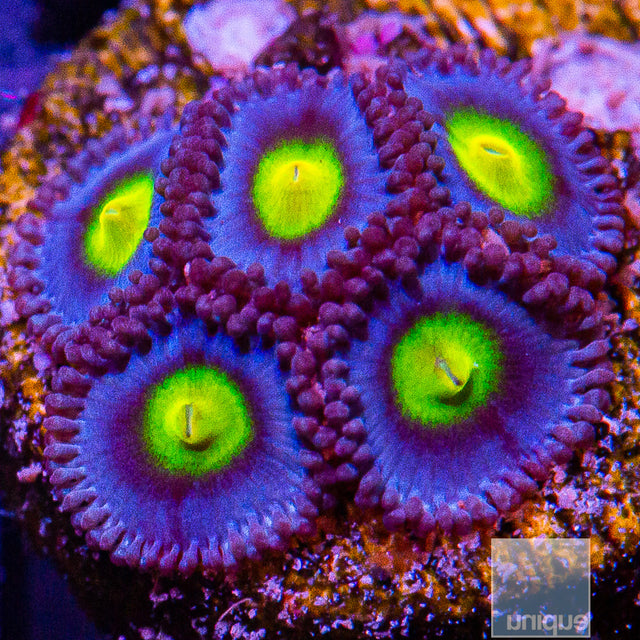 HUSBANDRY NOTES: Zoa/Paly- We keep our corals under Dalua/Illumagic X4 LED lights with an intensity of approximately 100 PAR and feed regularly with Polyp Lab Reef Roids and Benepets.