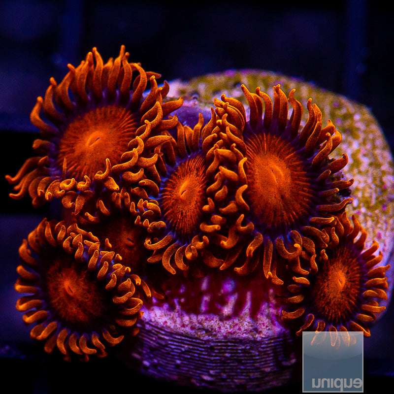 HUSBANDRY NOTES: Zoa/Paly- We keep our corals under Dalua/Illumagic X4 LED lights with an intensity of approximately 100 PAR and feed regularly with Polyp Lab Reef Roids and Benepets.