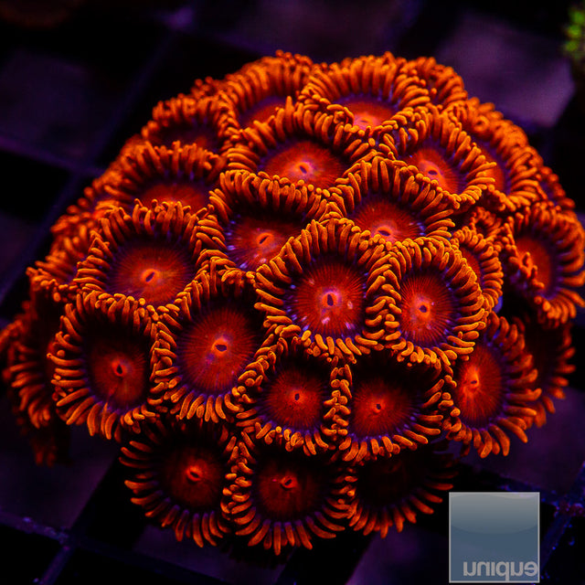 HUSBANDRY NOTES: Zoa/Paly- We keep our corals under Dalua/Illumagic X4 LED lights with an intensity of approximately 100 PAR and feed regularly with Polyp Lab Reef Roids and Benepets.