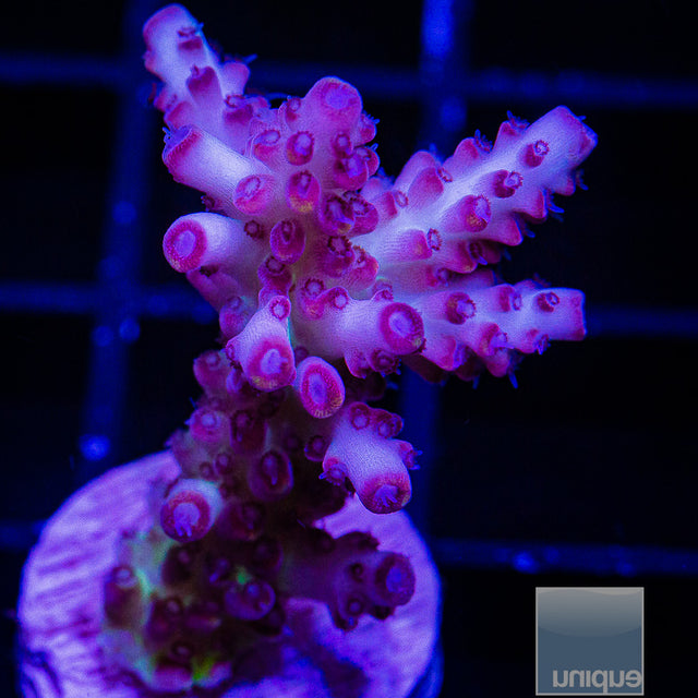 HUSBANDRY NOTES: SPS- We keep our corals under Dalua/Illumagic X4 LED lights with an intensity of approximately 200-250 PAR and feed regularly with Polyp Lab Reef Roids and BenePets.This is a WYSIWYG item. You will be purchasing the actual coral shown in the photo.